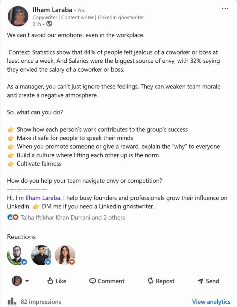 I enjoy translating industry statistics and macro trends into personal, relatable posts. Rather than just reporting numbers, I focus on their human impact (what they mean for the everyday work of my peers and clients).
